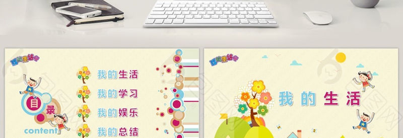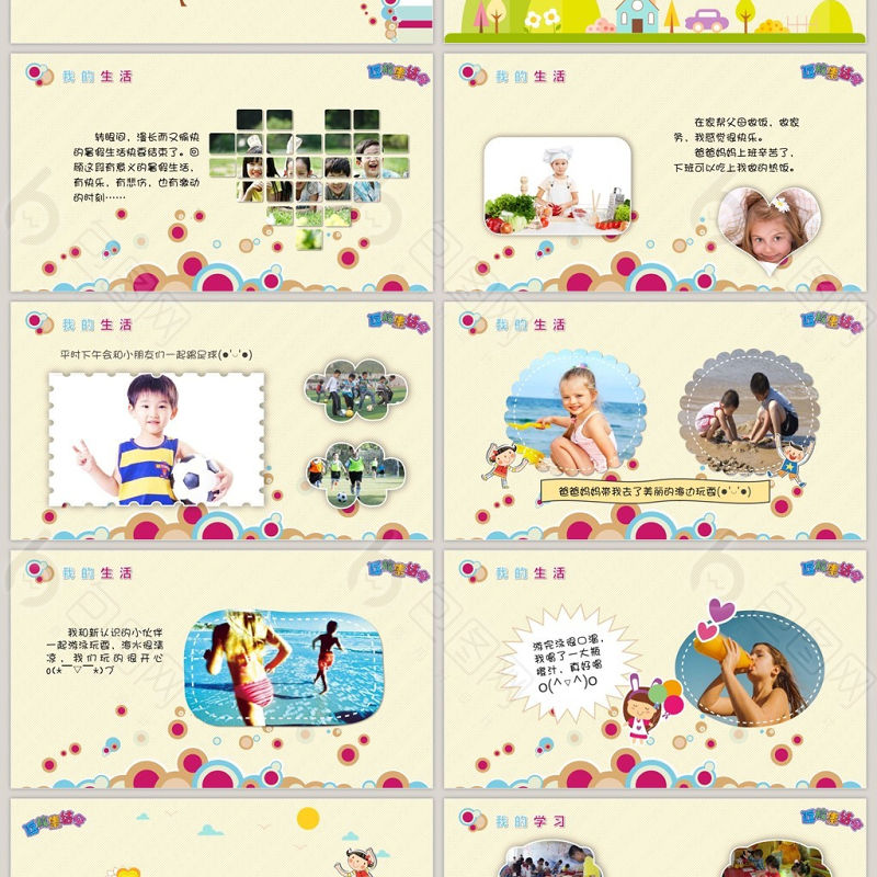 可愛卡通開學(xué)返校假期生活彩色PPT模板