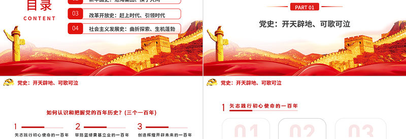 目錄 黨史:開天辟地、可歌可泣新中國史:滄海桑田、換了人間01020304CONTENT 改革開放史:趕上時代、引領時代社會主義發展史:曲折探索、生機蓬勃