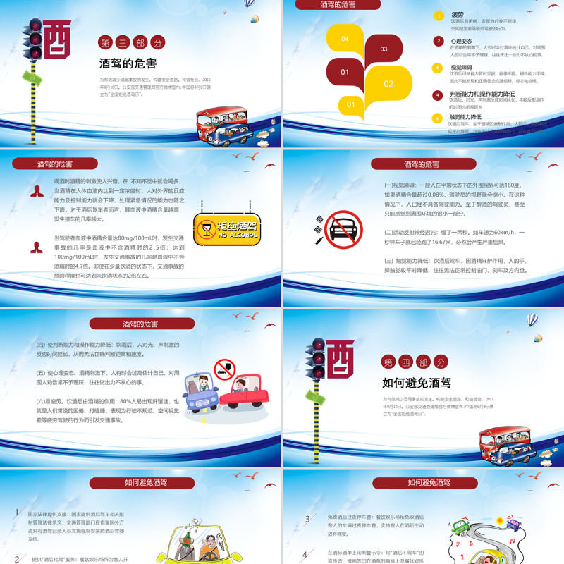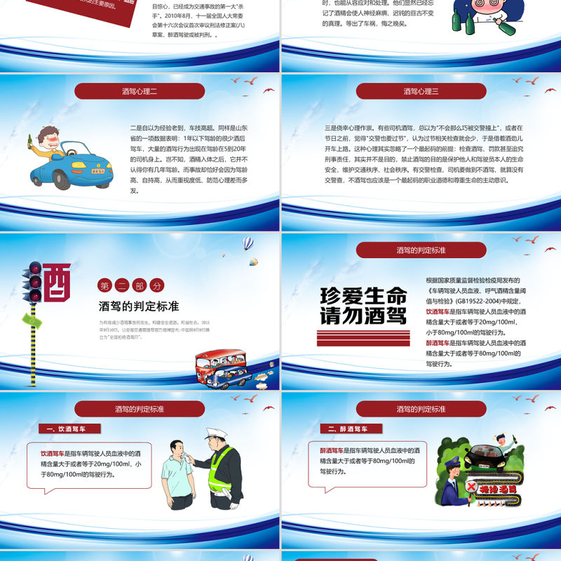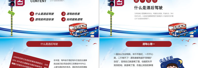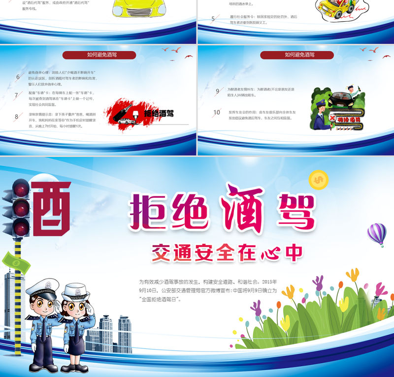 工圖網提供藍色卡通插畫拒絕酒駕交通安全在心中ppt供會員免費下載。更多精彩黨課PPT素材,盡在工圖網。