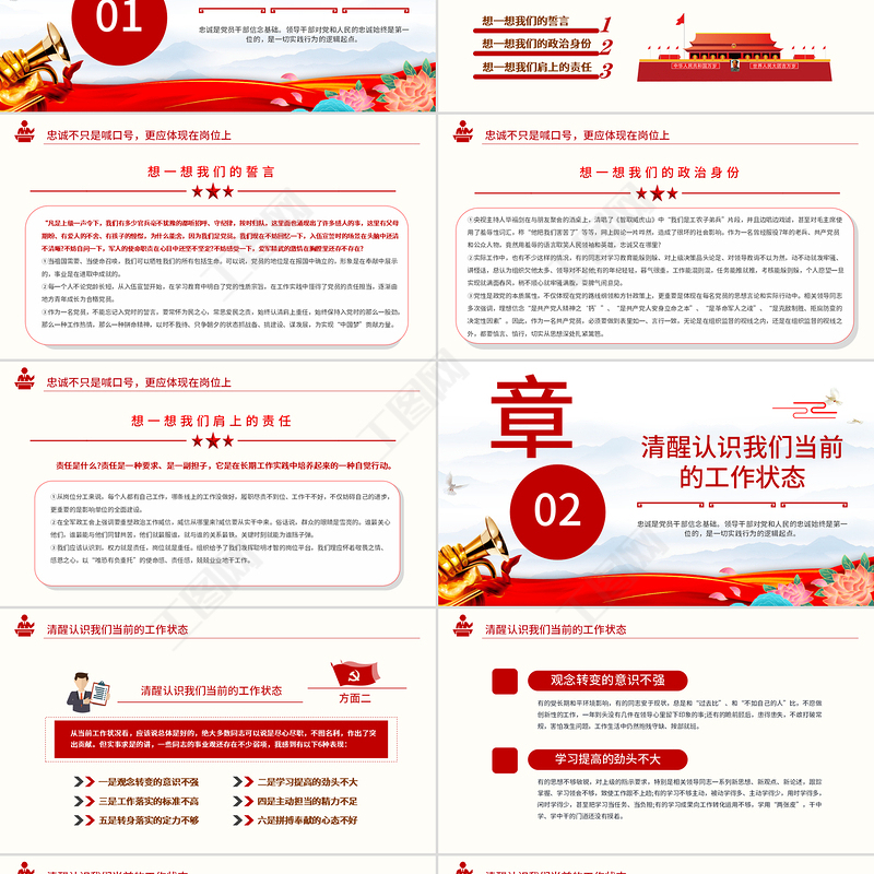 章02忠誠是黨員干部信念基礎(chǔ)。領(lǐng)導(dǎo)干部對黨和人民的忠誠始終是第一位的,是一切實踐行為的邏輯起點。清醒認識我們當(dāng)前的工作狀態(tài)