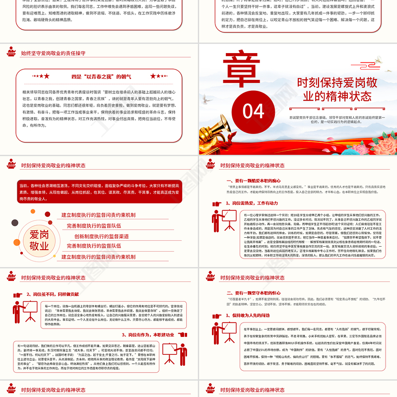 始終堅守愛崗敬業(yè)的責(zé)任操守010203“打鐵自身硬”的底氣愛崗敬業(yè),說起來容易,做起來難。愛崗,就是要熱愛自己的工作崗位,熱愛自己的本職工作;敬業(yè),就是要以極端負責(zé)的態(tài)度對待自己的工作。我理解,愛崗敬業(yè),必須要具備以下四個方面素質(zhì):“敢啃硬骨頭”的勇氣“一錘一錘敲”的銳氣04“以青春之我”的朝氣