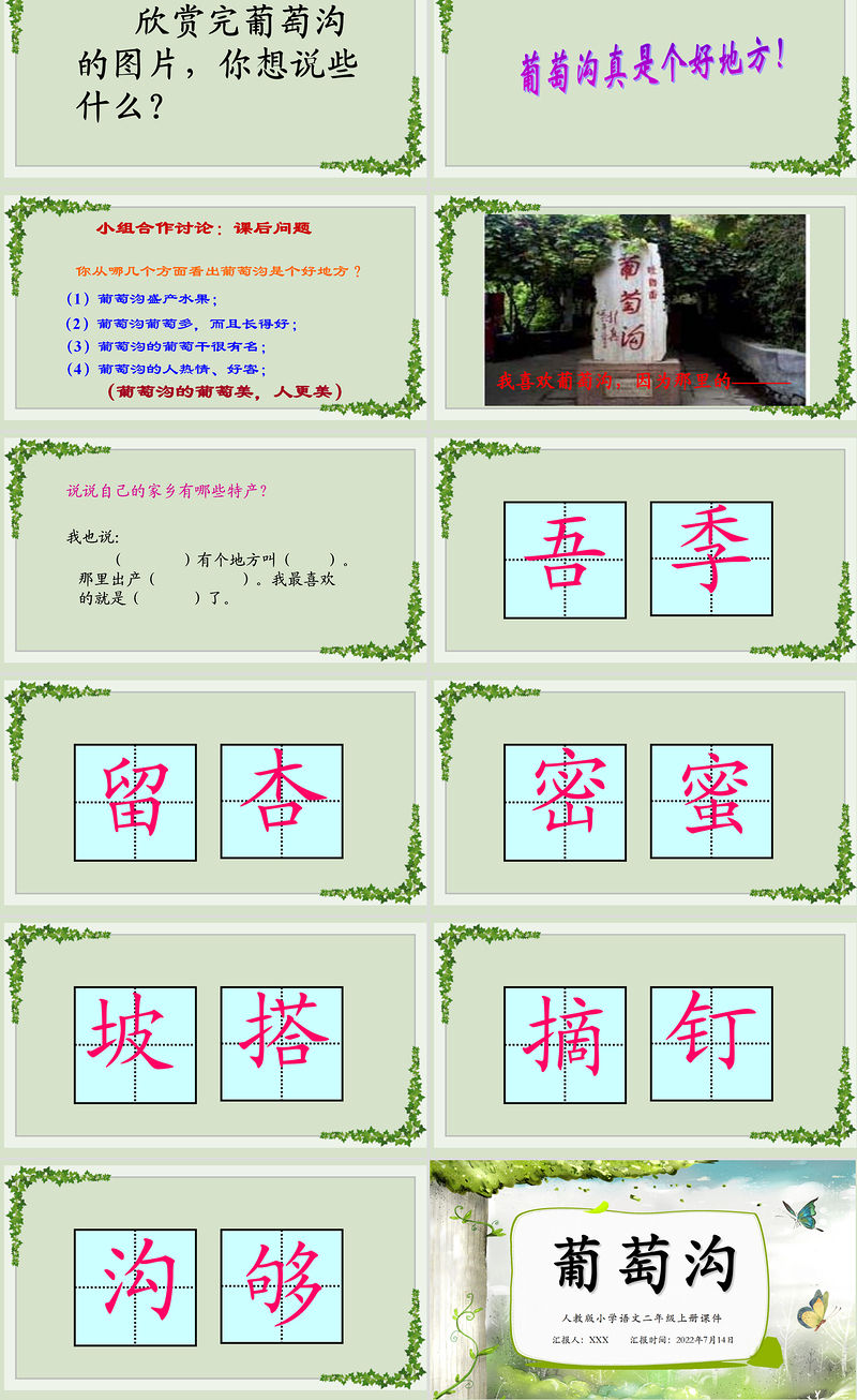 匯報人:XXX 匯報時間:2022年7月14日人教版小學語文二年級上冊課件葡萄溝
