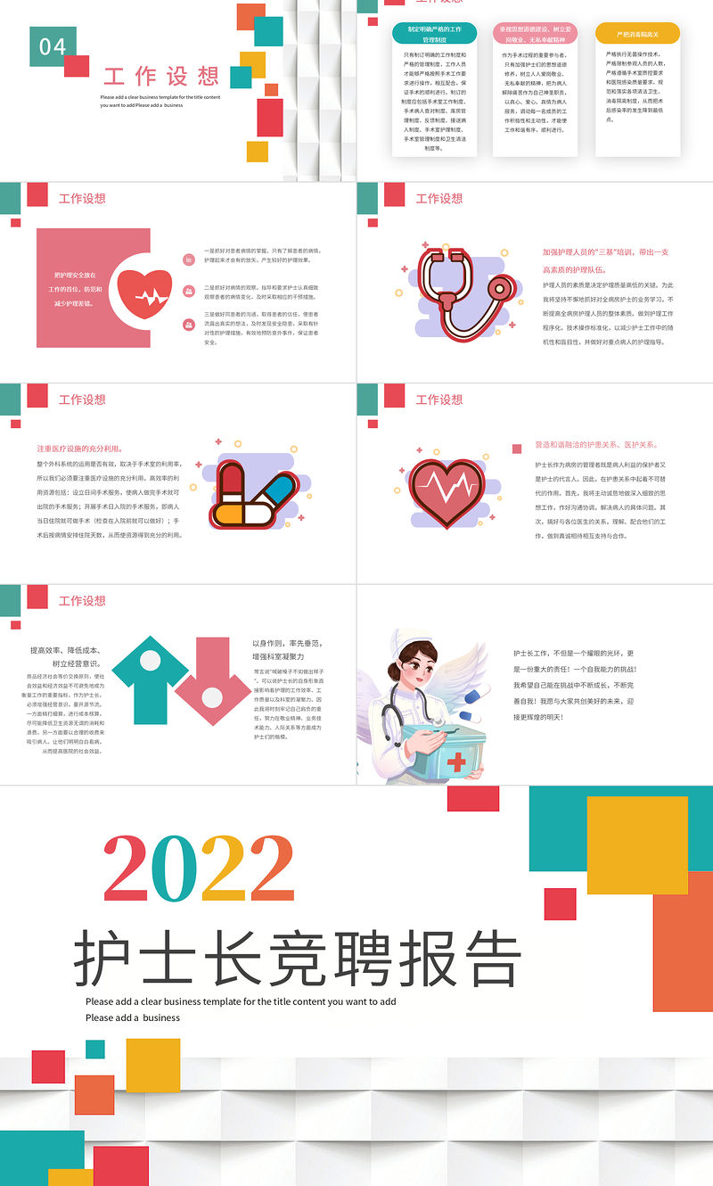 2022護士長競聘報告PPT多彩活潑護士長競聘工作匯報模板