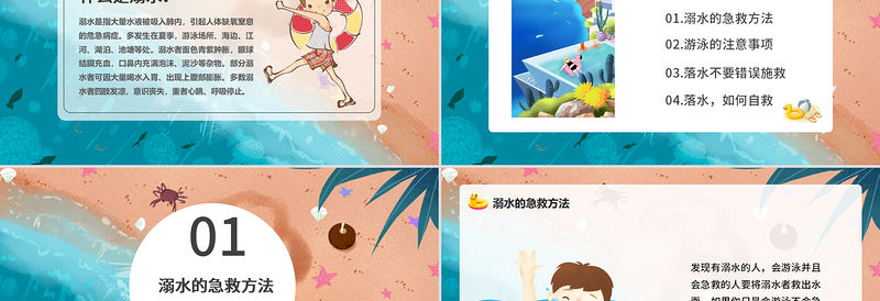 01.溺水的急救方法02.游泳的注意事項03.落水不要錯誤施救04.落水,如何自救
