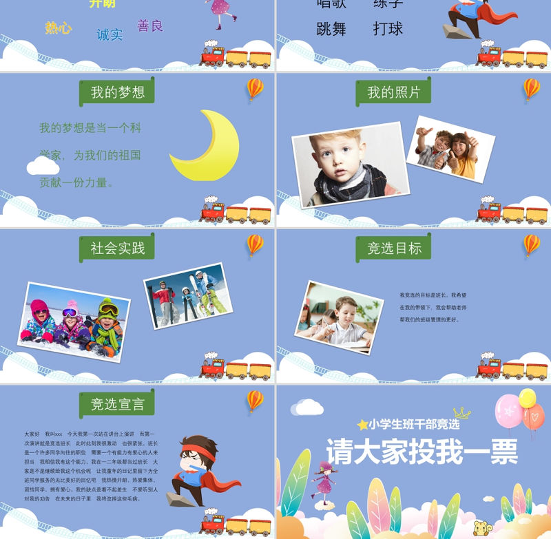 2021班干部競選PPT卡通風開學季小學生班委課代表大隊委競選自我介紹模板包含