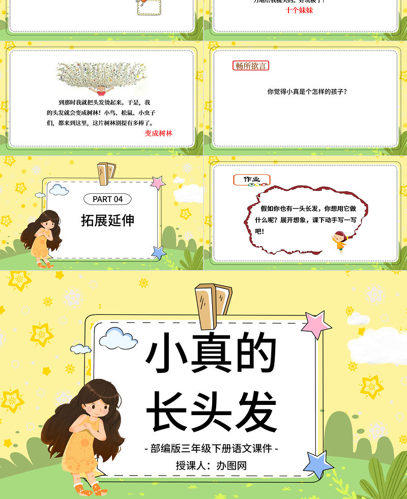 小真的長頭發- 部編版三年級下冊語文課件 -授課人:辦圖網