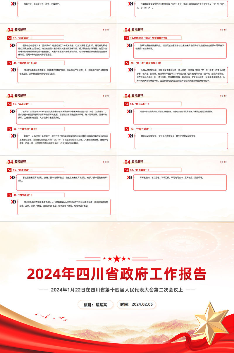 2024年四川省政府工作報告PPT紅色簡潔黨政機關工作匯報模板 Array