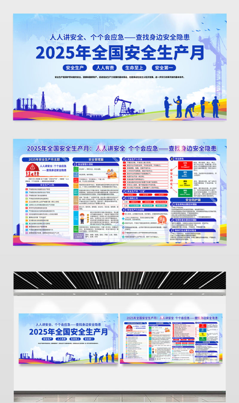 2025年安全生產月掛圖紅色查找身邊安全隱患宣傳教育活動展板系列掛畫模板包含