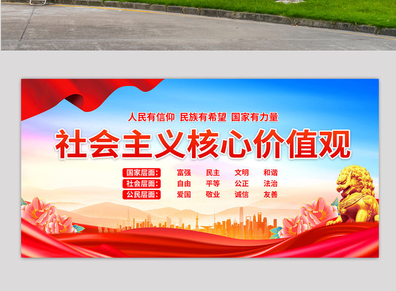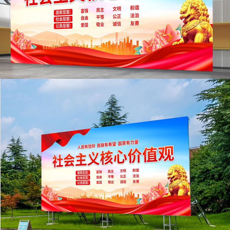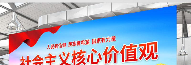 社會主義核心價值觀展板精美大氣新時代文明實踐站宣傳模板 Array