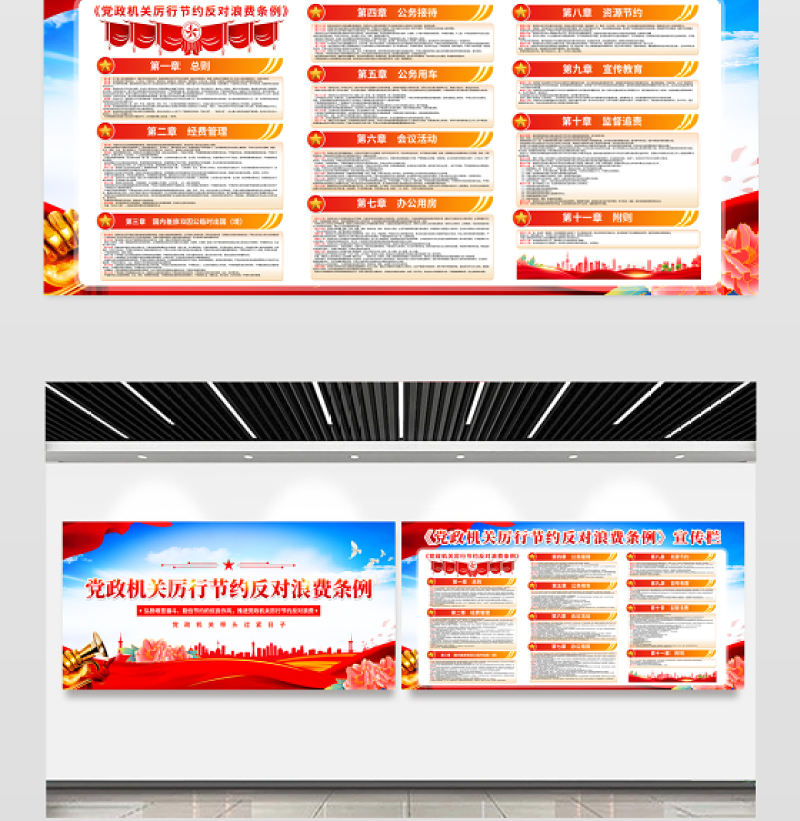 展板 > 2025《黨政機關厲行節約反對浪費條例》黨建宣傳欄設計模板