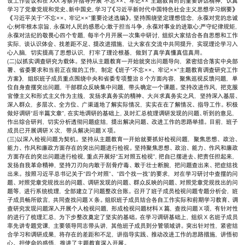 機關單位主題教育總結匯報自查評估報告三篇