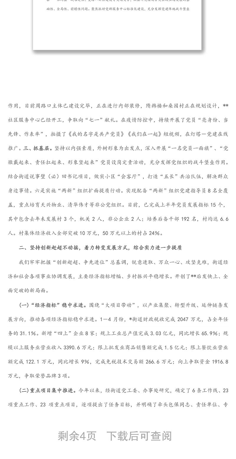 街道黨工委2020年上半年工作總結及下半年工作思路包含