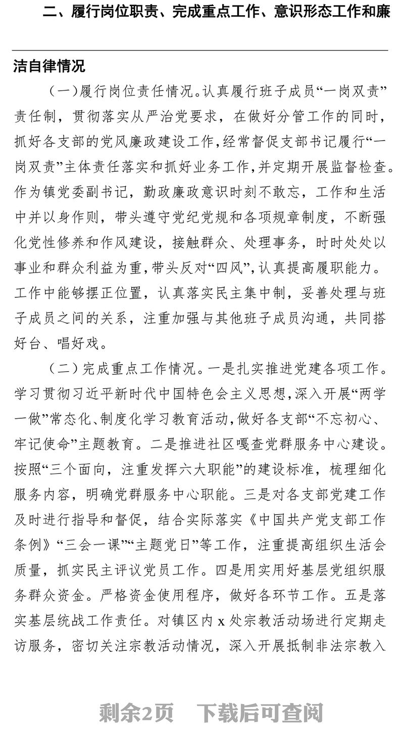 鄉鎮黨委副書記個人述職述德述責述廉報告 Array