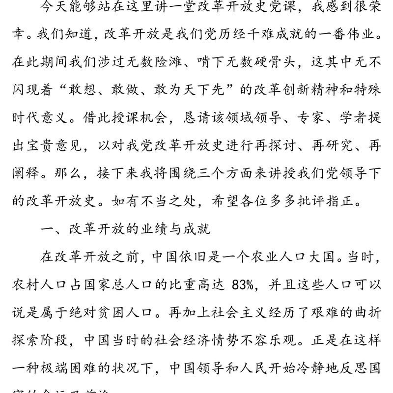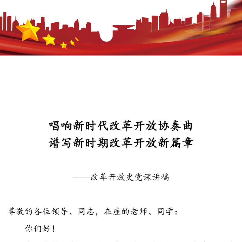 唱響新時(shí)代改革開(kāi)放協(xié)奏曲譜寫(xiě)新時(shí)期改革開(kāi)放新篇章-改革開(kāi)放史黨課講稿