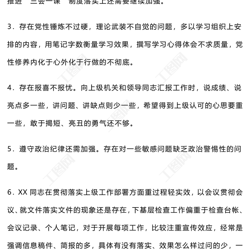 工圖網提供2024年民主生活會、組織生活會批評與自我批評意見50條范文供會員免費下載。更多精彩黨課PPT素材,盡在工圖網。