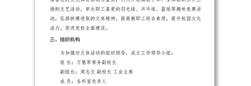 【工作方案】縣委黨校教職工文體活動實施方案 Array