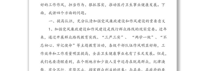 在全縣衛生健康系統黨風廉政建設暨作風建設工作會議上的講話