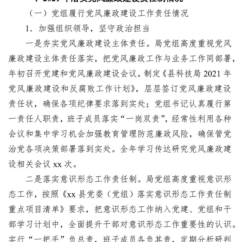 科技局黨組關于2021年度落實黨風廉政建設責任制和政治生態(tài)建設情況報告