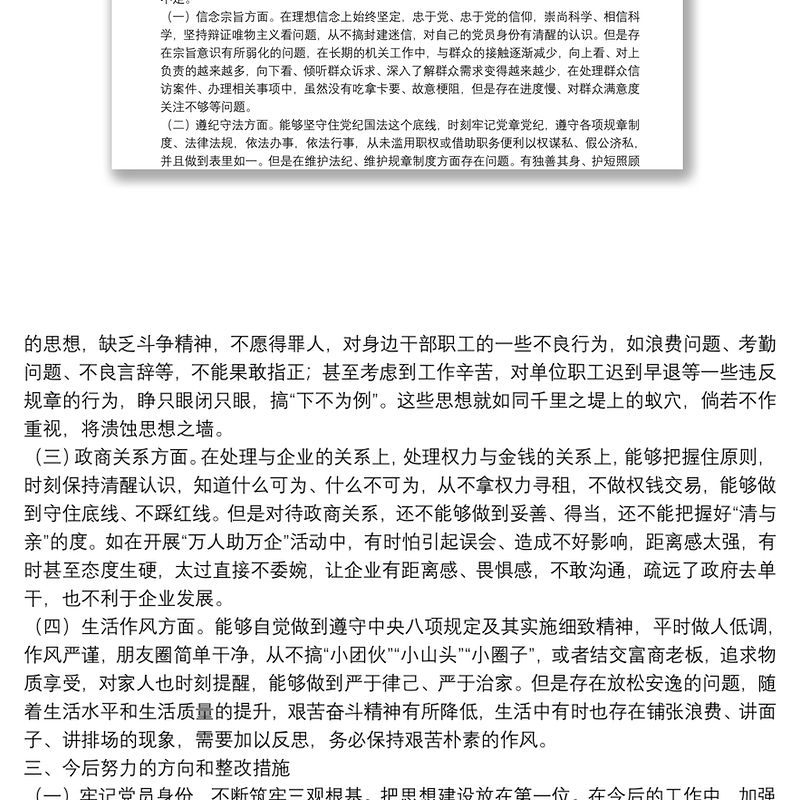 “防風(fēng)險(xiǎn)、守底線”專題民主生活會組織生活會個(gè)對照檢查剖析材料包含
