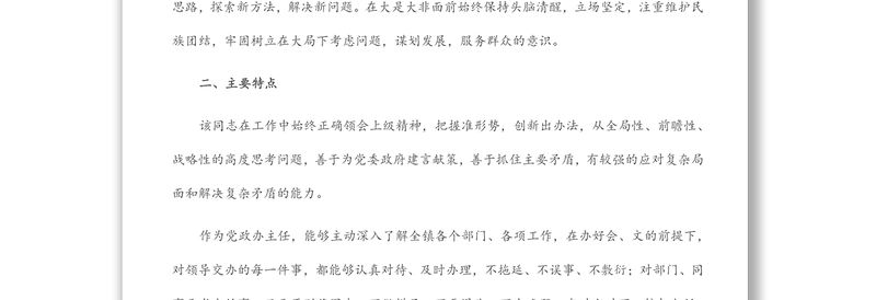 現(xiàn)實(shí)表現(xiàn)材料(鄉(xiāng)鎮(zhèn)黨政辦主任)