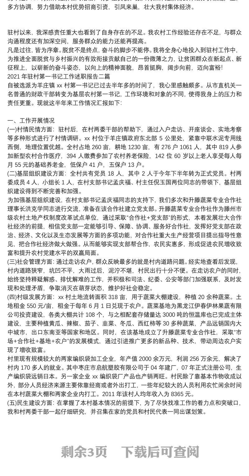 2021年駐村第一書記駐村以來工作總結三篇包含