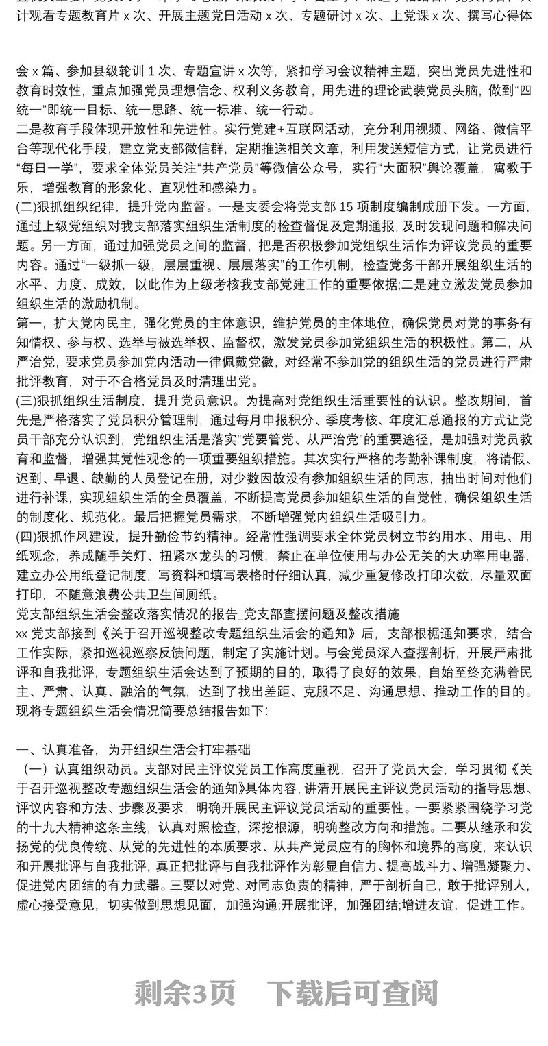 黨支部組織生活會整改落實情況的報告_黨支部查擺問題及整改措施