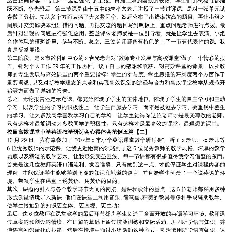 校園高效課堂小學英語教學研討會心得體會范例五篇 Array