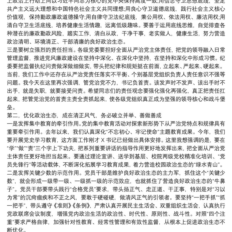 持續(xù)優(yōu)化政治生態(tài)推動全面從嚴治黨向縱深發(fā)展——在黨風廉政建設工作座談會上的講話