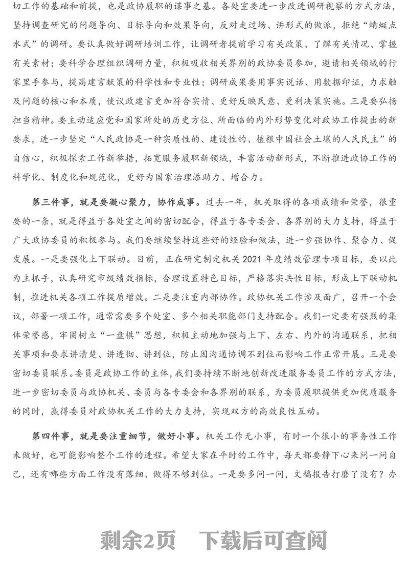 領導講話 > 2021年在市政協機關黨建暨作風建設大會的總結講話.DOCX