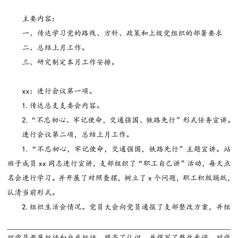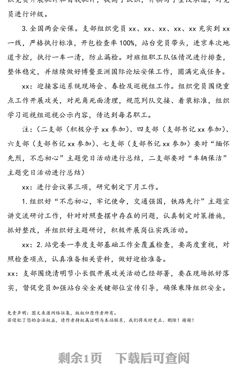 企業(yè)黨支部支部委員會會議記錄模板(集團公司企業(yè)黨支部參考),黨支部,公文 Array