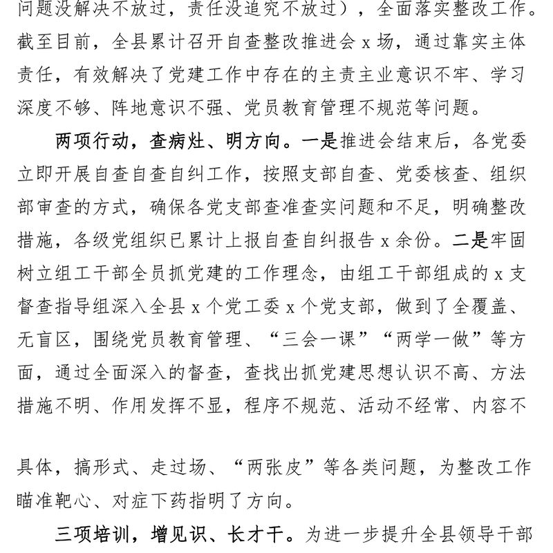 述職報告 > 全縣黨建問題整改工作匯報報告總結(jié).DOCX