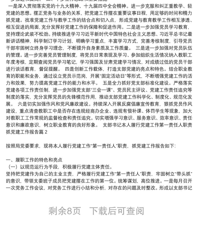 工圖網提供支部書記履行黨建工作責任述職|支部書記本人履行黨建工作第一責任人職責抓黨建工作報告6篇供會員免費下載。更多精彩黨課PPT素材,盡在工圖網。