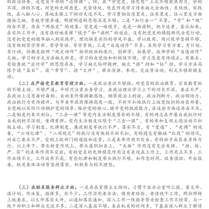 X基層黨支部班子黨史學習教育專題組織生活會“五個方面”對照檢查材料,組織生活會,筆桿子 Array