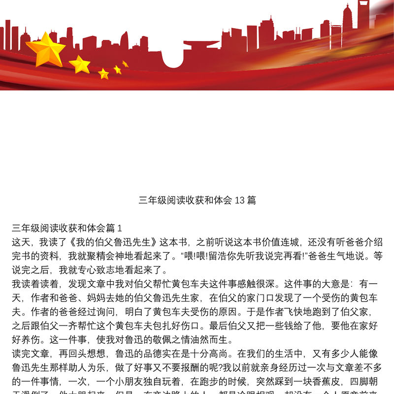 工圖網(wǎng)提供三年級(jí)閱讀收獲和體會(huì)13篇供會(huì)員免費(fèi)下載。更多精彩黨課PPT素材,盡在工圖網(wǎng)。