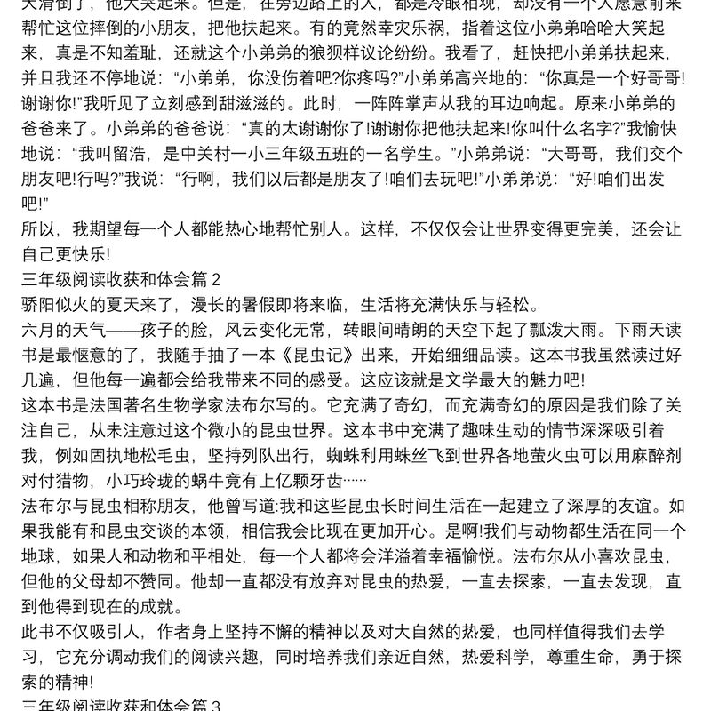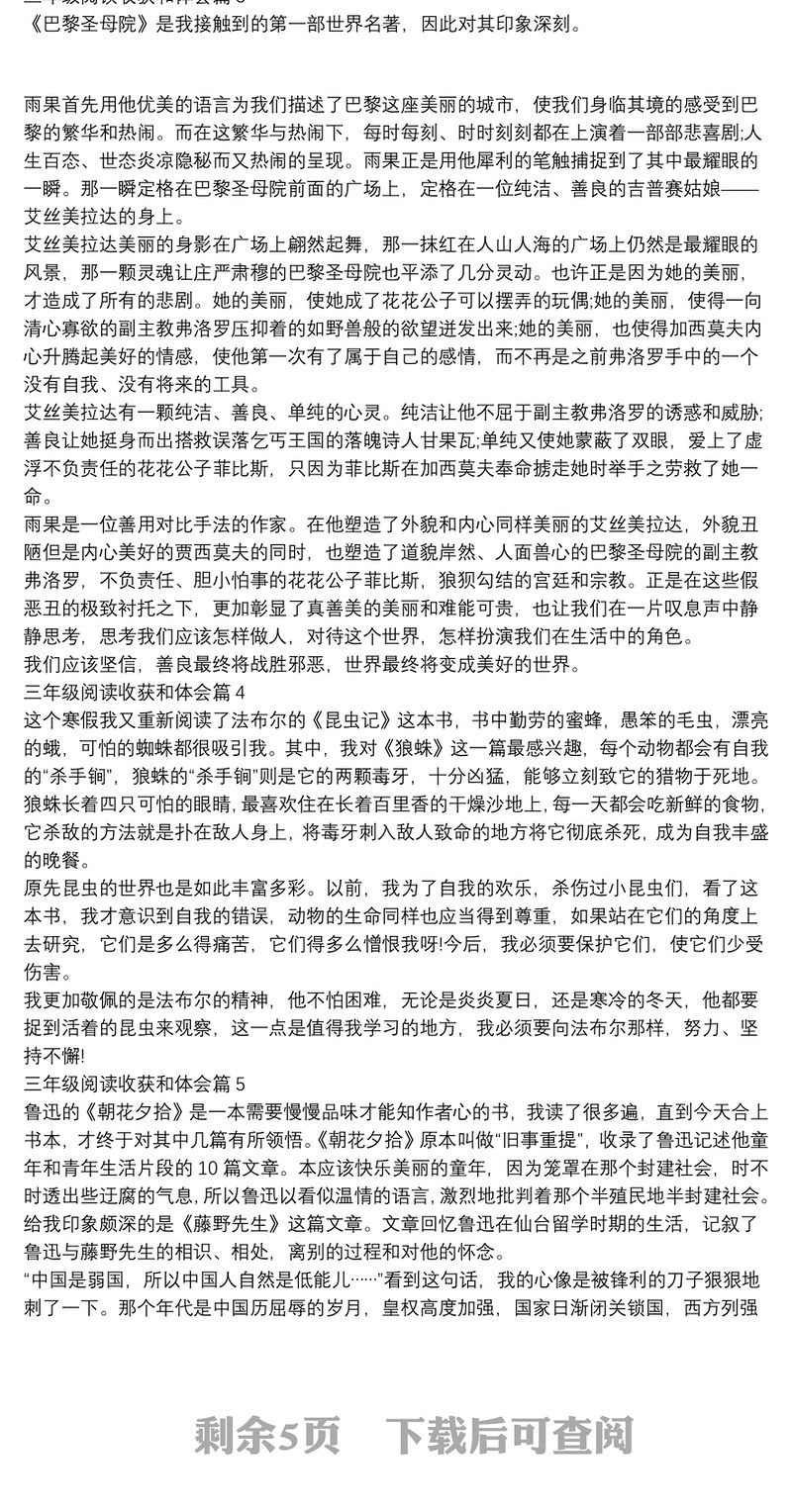 三年級(jí)閱讀收獲和體會(huì)13篇