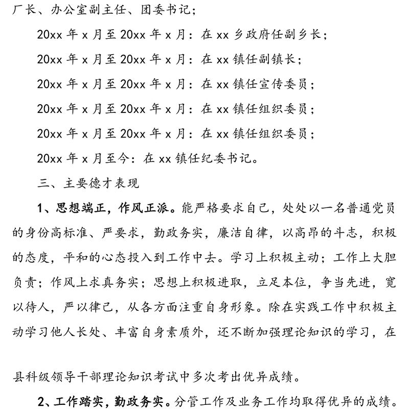 現實表現材料(鄉(xiāng)鎮(zhèn)一般同志)包含