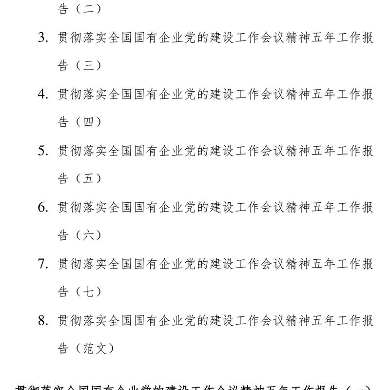 (8篇)貫徹落實(shí)國有企業(yè)黨的建設(shè)工作會(huì)議精神五年工作報(bào)告匯編