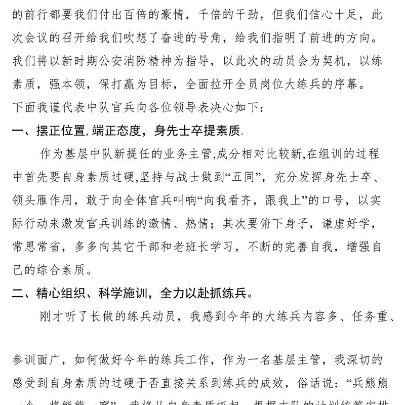 部隊基層干部大練兵表態(tài)發(fā)言稿 Array
