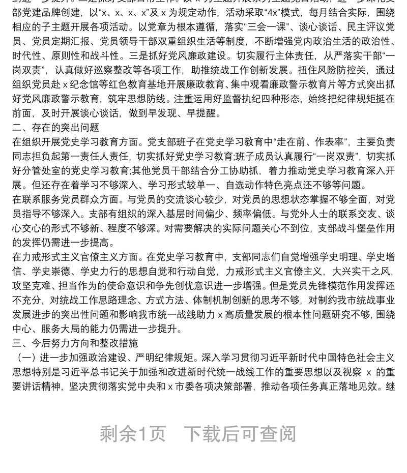 市委統(tǒng)戰(zhàn)部黨支部2021年半年工作總結級黨史學習教育專題組織生活會檢視剖析材料 Array