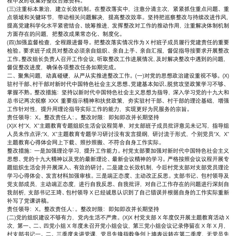 2021黨支部組織生活會對照檢查材料和整改方案2021年支部專題組織生活會整改方案2022林業意識形態風險點排查整改方案2022政治生態分析研判反饋問題整改方案2022年度黨支部組織生活會整改方案2022黨組織書記抓基層黨建工作問題整改方案2022年機關黨支部黨建工作述職評議考核反饋問題整改方案2022對照查擺肖毅案件暴露的突出問題情況方面整改措施2022統戰部黨史學習教育專題民主生活會整改方案2022在帶頭深刻感悟兩個確立的決定性意義等方面整改方案2022研究制定巡查整改方案的會議紀要2022涉糧問題專項巡察整改方案學校黨支部2022年基層黨組織生活會整改方案2023主題教育自查問題整改方案