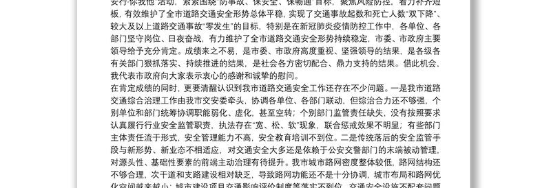 領導講話 > 在全市道路交通安全隱患排查整治工作會議上的講話.DOCX