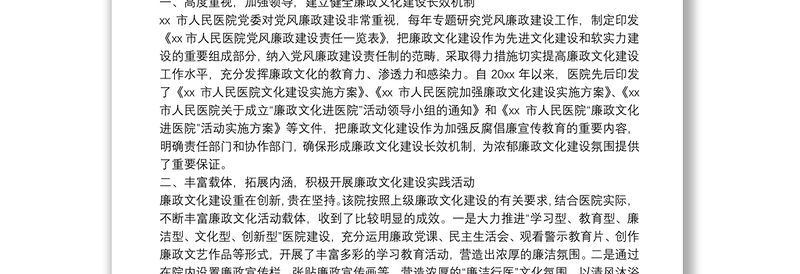 廉潔行醫經驗交流材料(紀委書記關于市人民醫院廉政文化建設的經驗交流發言材料)(醫院)包含