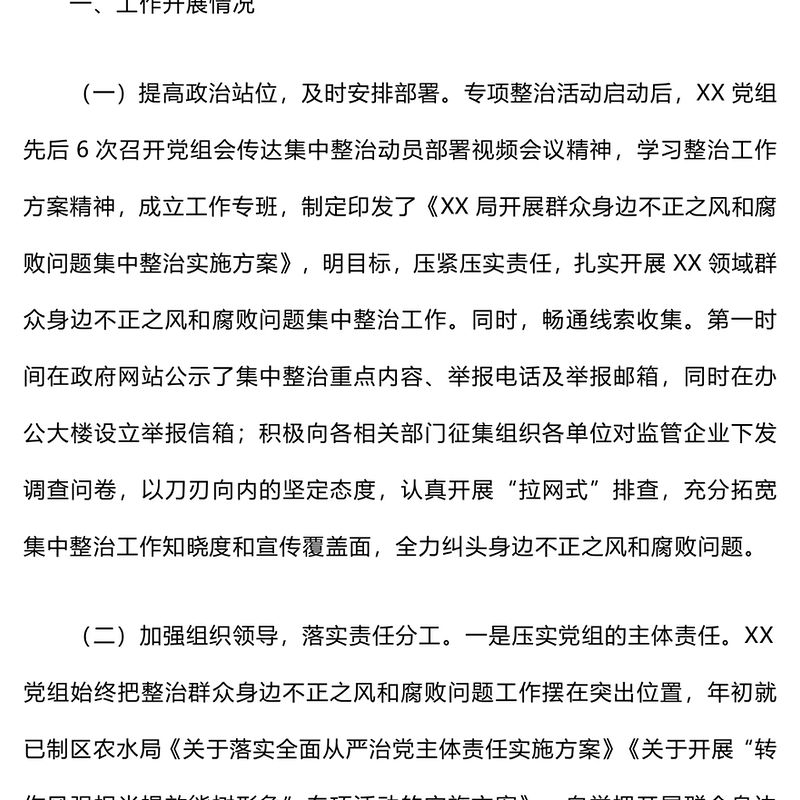 關于開展群眾身邊不正之風和腐敗問題集中整治工作情況報告范文包含