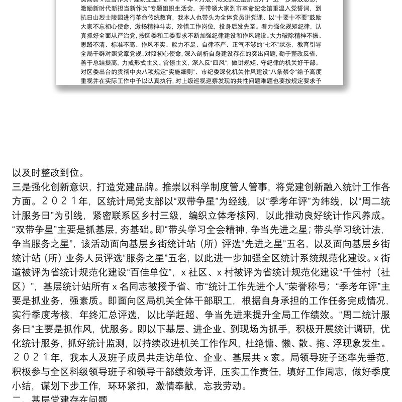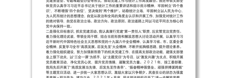 區統計局黨支部書記2021年度書記抓基層黨建工作述職報告 Array