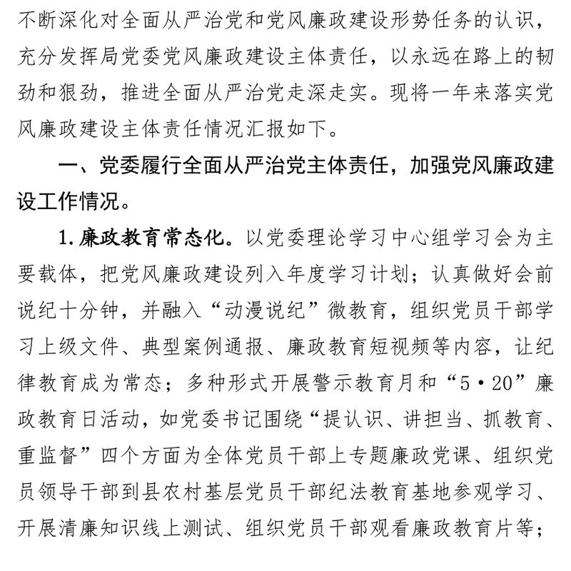 2020年度落實黨風廉政建設主體責任情況報告,黨風廉政建設,公文范文 Array