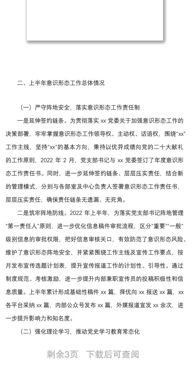 2022年上半年意識形態領域工作總結范文集團企業工作匯報報告