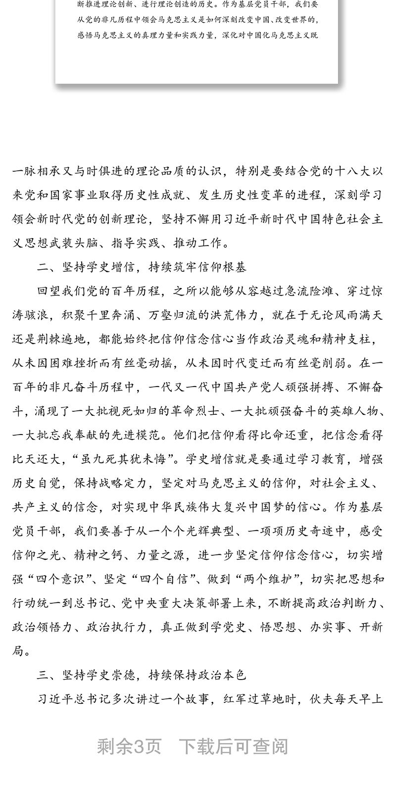 黨員干部參加黨史學習教育專題研討發(fā)言材料范文(1)
