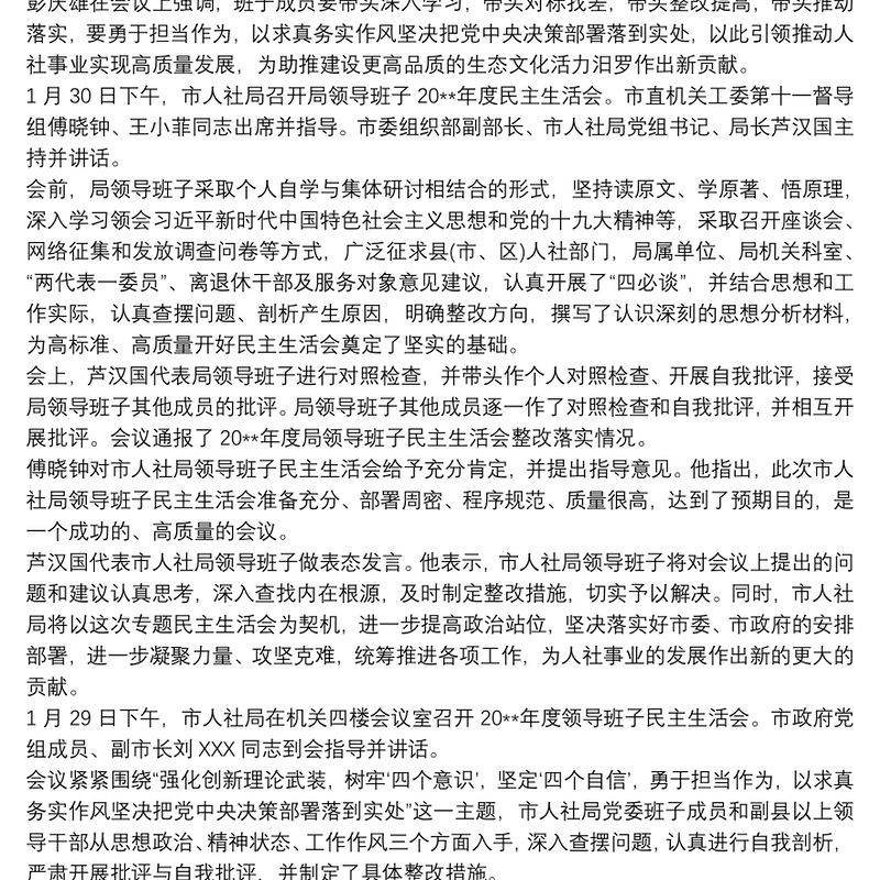 人社局長在局機關領導班子2021專題民主生活會上主持講話 Array