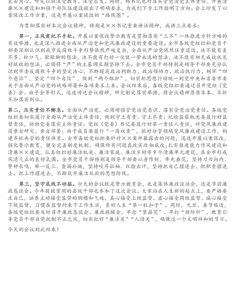 全市領導干部以案促改警示教育大會主持詞及講話 Array