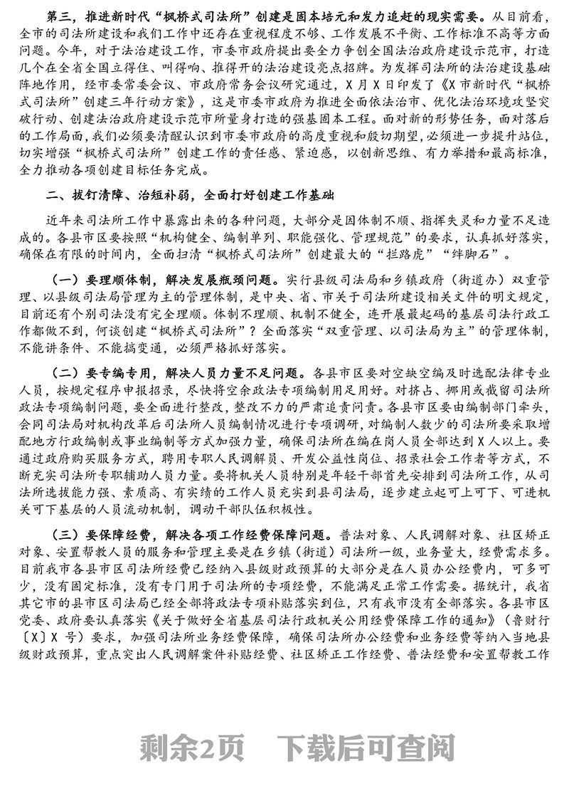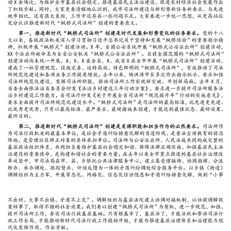 在全市優化法治環境重點任務攻堅突破會議暨新時代“楓橋式司法所”創建動員 部署會議上的講話